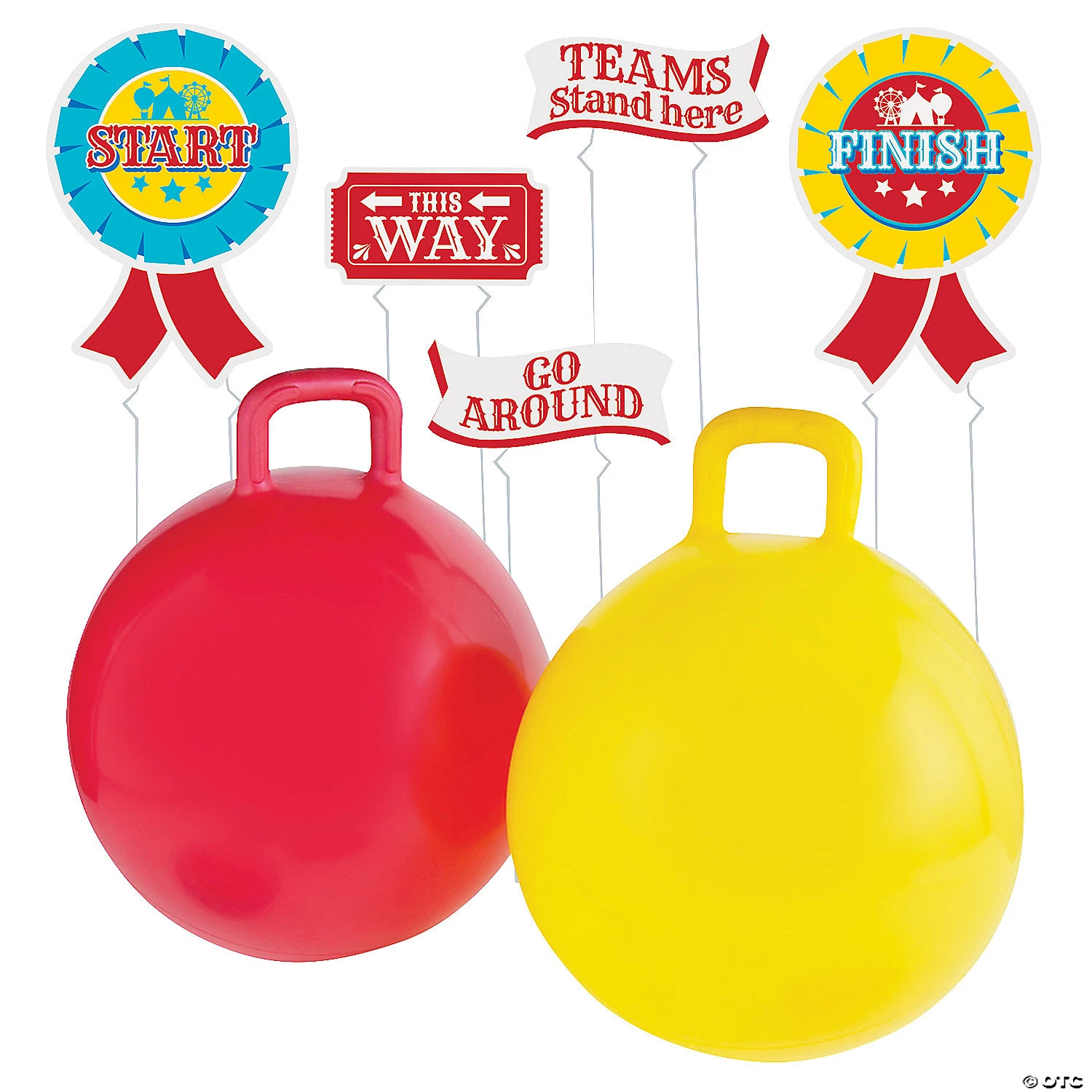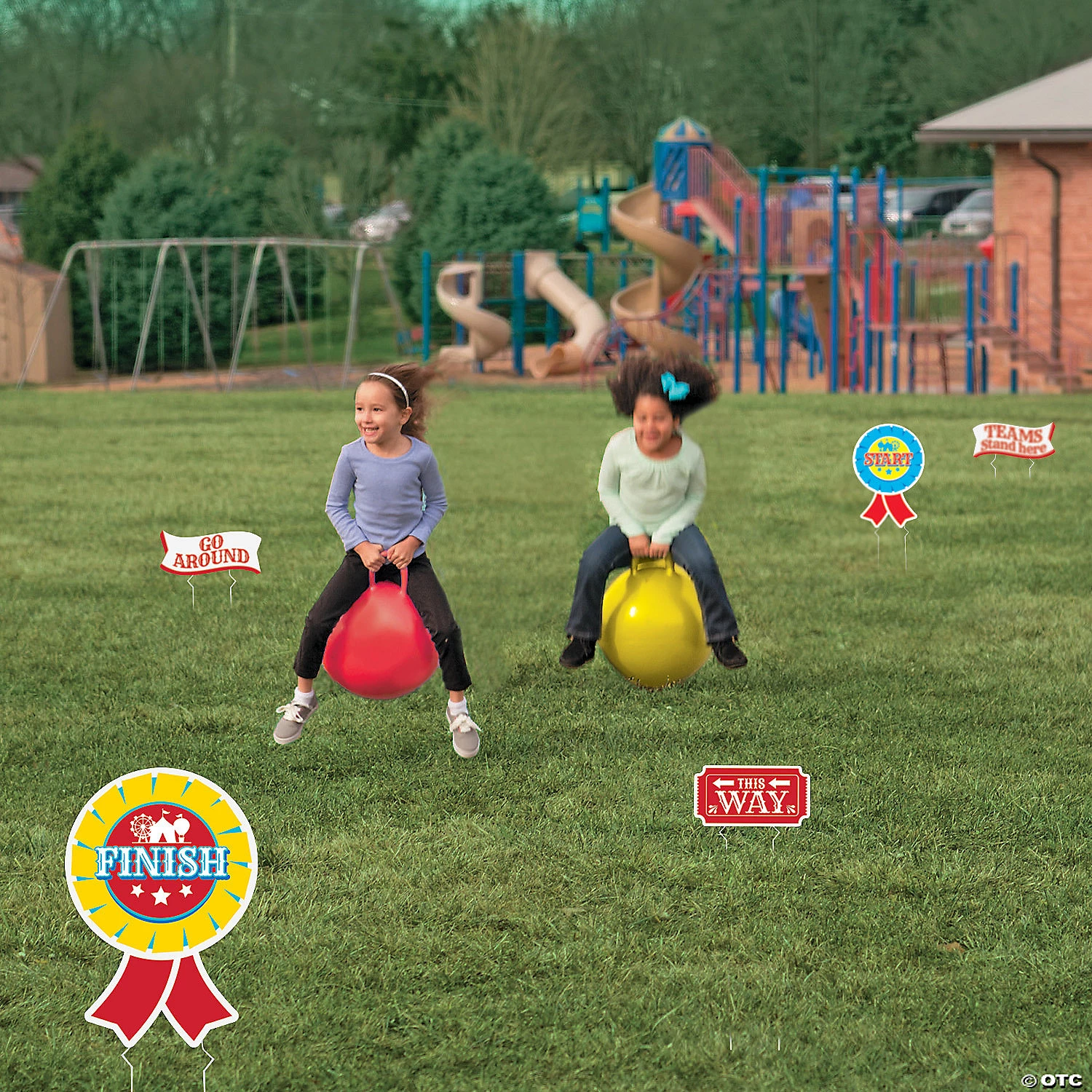 Get kids moving when you add this exciting relay race to your gym class activities, carnival party games or everyday active play! Complete with instructions for playing one on one or in teams, this game is a fun way to help children get the wiggles and giggles out. Includes 22″ metal stakes. Rubber and corrugated plastic. (7 pcs. per set) Ball hoppers, 18″ x 22 1/2″; signs, 8 1/2″ – 10″ x 4″ – 14 1/2″ © OTC