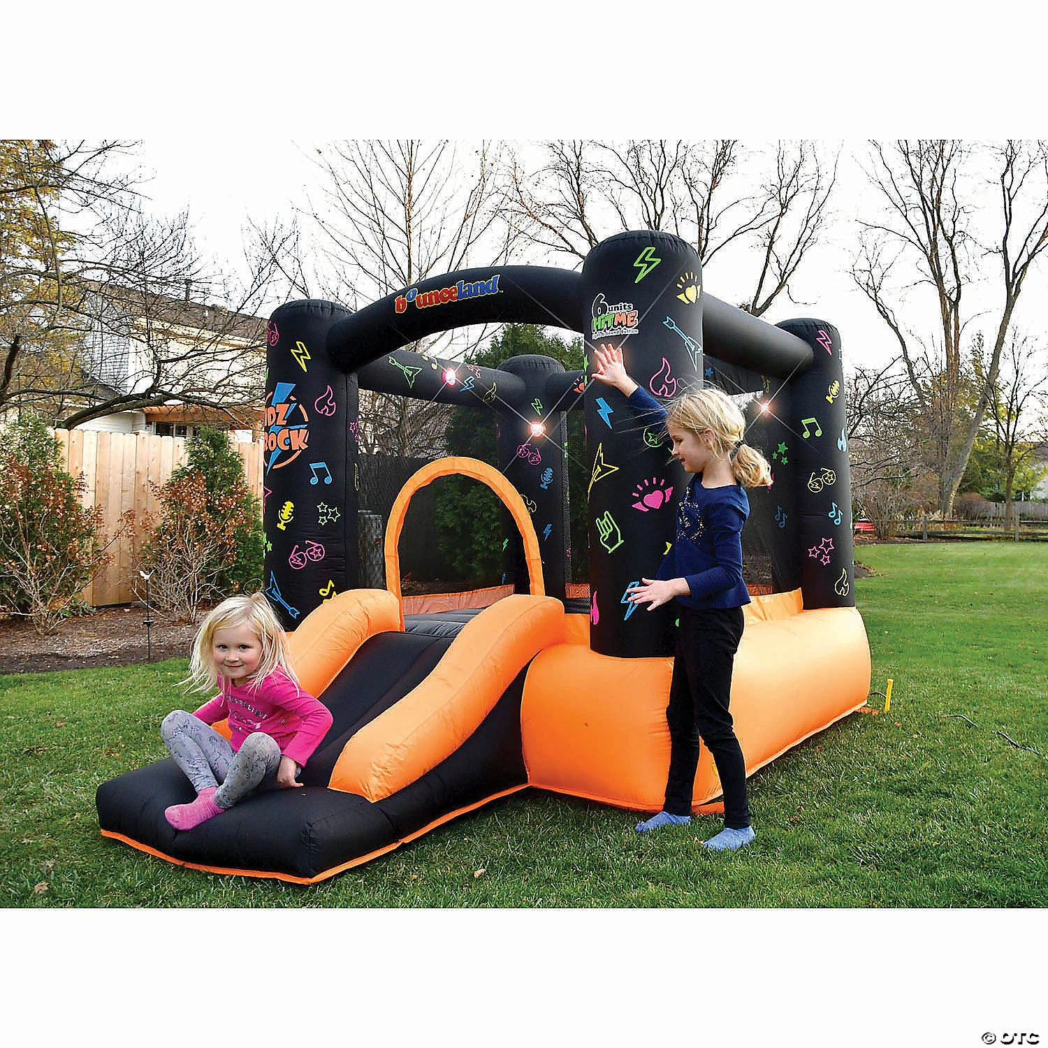 The kidz rock bounce house will be an instant hit with its spacious jumping area and slide that’s perfect for indoor and outdoor use. This bounce house also comes with interactive, pressure-sending pads that will play music and flash lights, encouraging your children to get active!Features & Specifications:• 9 ft L x 7 ft W x 5.5 ft H inflated size• Powered by strong UL blower (included)• Heavy duty commercial grade material on bouncing floor• Heavy-duty puncture proof material with double to quadruple stitches• Large pillars for sturdy structure• Strong 9″ stakes to secure the bounce house to the ground• Long fill tube (approx. 6 ft) allows blower to be placed away from the bouncer while inflating• Easy set up and take down• Inflates in less than a minute• Indoor and Outdoor Use (no need to use stakes or sandbag for indoors)• Shipping weight: 30 lbs• Package size: 25″ x 15 “x 15”• Packed in heavy-duty carton with description on sidesWeight Limit Recommendations:• Recommended for ages 3 to 8 years old• Maximum weight: 150 lbs• Maximum kids inside at one time: 2• Maximum individual weight: 75 lbsPackage Includes:• 9′ L x 7′ W x 5.5′ H bounce house• 115V, 60Hz, 3.8A, 0.6 HP UL certified blower with 25 ft. power cord and GFCI plug (Recommended for all electronic toys by the American Consumer Safety Committee)• 6 Lights and music packs• Ground stakes pack• Large carrying bag• Repair kit and instructionsSpecial Shipping Information: This item ships separately from other items in your order. This item cannot ship to a P.O. Box. This item may be subject to additional processing days. ITEM IS NOT ELIGIBLE FOR EXPEDITED SHIPPING You may initiate a return for unused items within 30 days, if the items are in original packaging with all original materials included with the shipment.