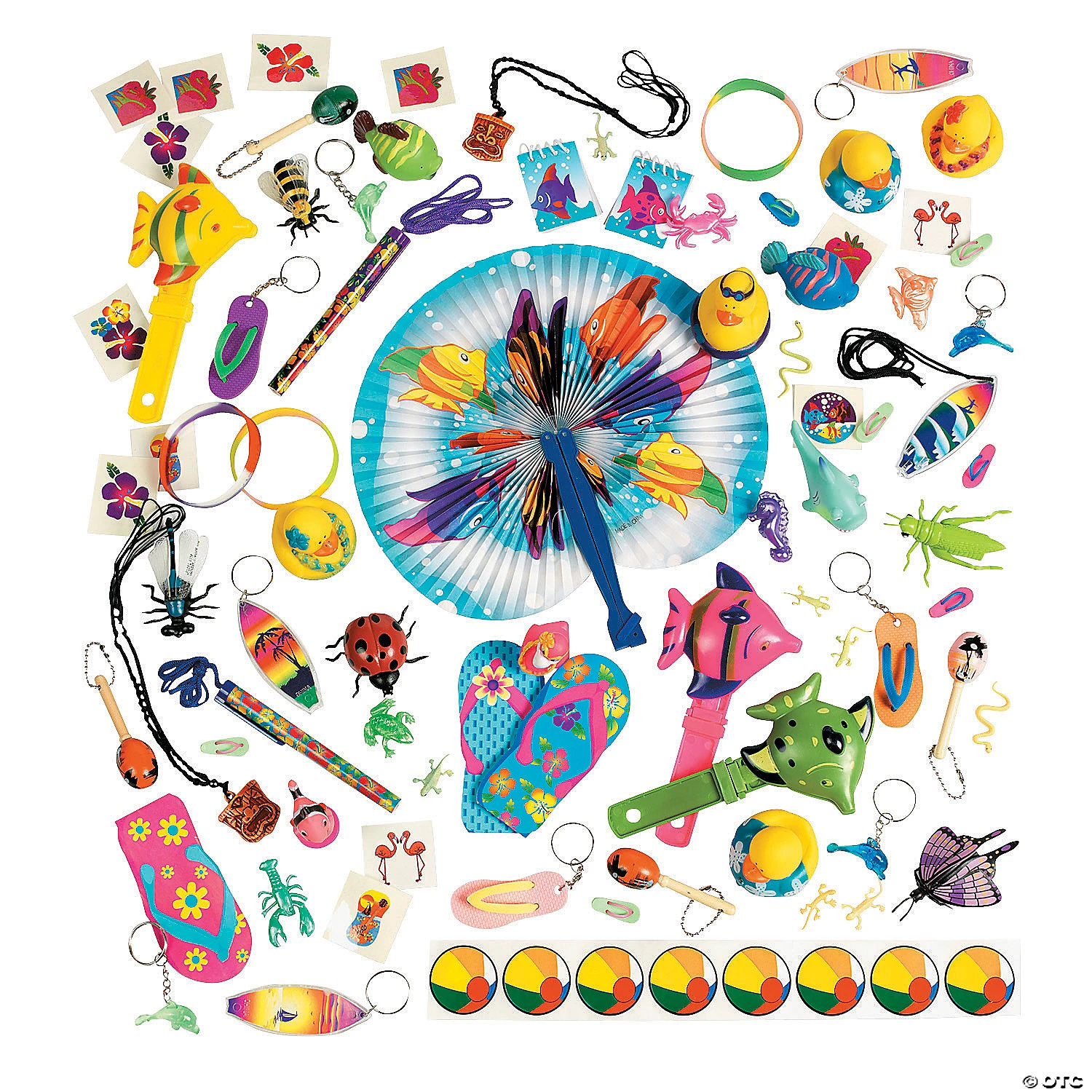 Packed full of Hawaiian color, this Mega Tropical Novelty Assortment of summer fun is perfect for luaus, beach parties, Trunk or Treat handouts, schools or day cares! Hand out these beach party toys as tropical prizes in carnival games! (250 pcs. per unit)• Assortments are subject to change at any time and may vary from picture shown. Substituted items will be similar in nature.