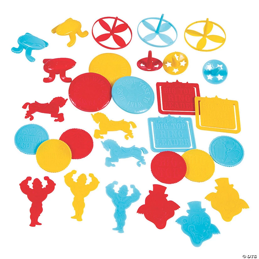 Everyone loves a carnival party theme. The colors! The activities! The fun! These assorted carnival plastic toys make excellent party favors for a carnival or circus themed party or use them for some carnival games or even as decoration. Perfect for small hands, these toys work well as classroom prizes, too. Plastic. (100 pcs. per unit) 1″ – 2″ Assortment may vary. © OTC