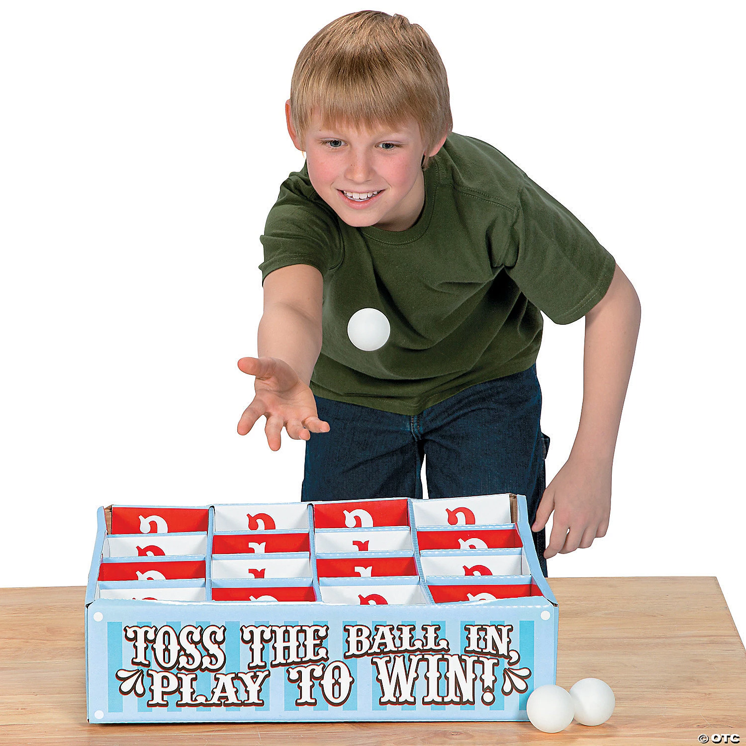 Step right up to big fun and toss the plastic balls to rack up points! Use this toss game as a carnival game or use it in the classroom as a math game. Don’t forget to stock up on carnival prizes and rewards for your game champs on our site! Includes cardboard game and 4 plastic 2″ balls. (5 pcs. per unit) 15 1/2″ x 15 1/2″ x 4″. Simple assembly required. © OTC
