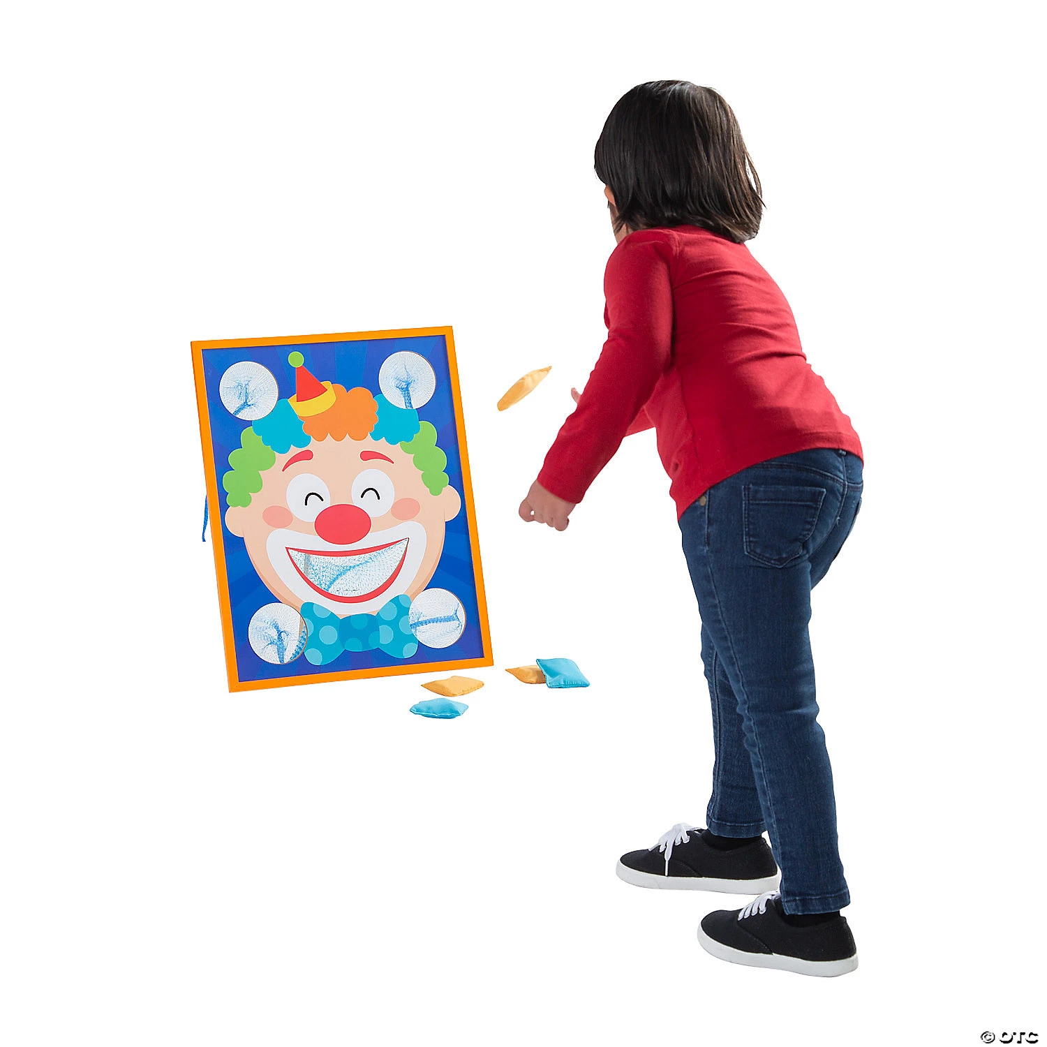 This family-friendly game is a hit at family game night, in the classroom or at a carnival or other community event. Kids toss the colorful bean bags at the board in an attempt to land the bags into the clown’s open mouth or other open spots on the board. Players can play one-on-one or in teams to try to get the most bean bags into the holes. Wood. Board, 16″ x 20 1/2″; bean bags, 2 1/4″. (7 pcs. per set) Simple assembly required. © OTC