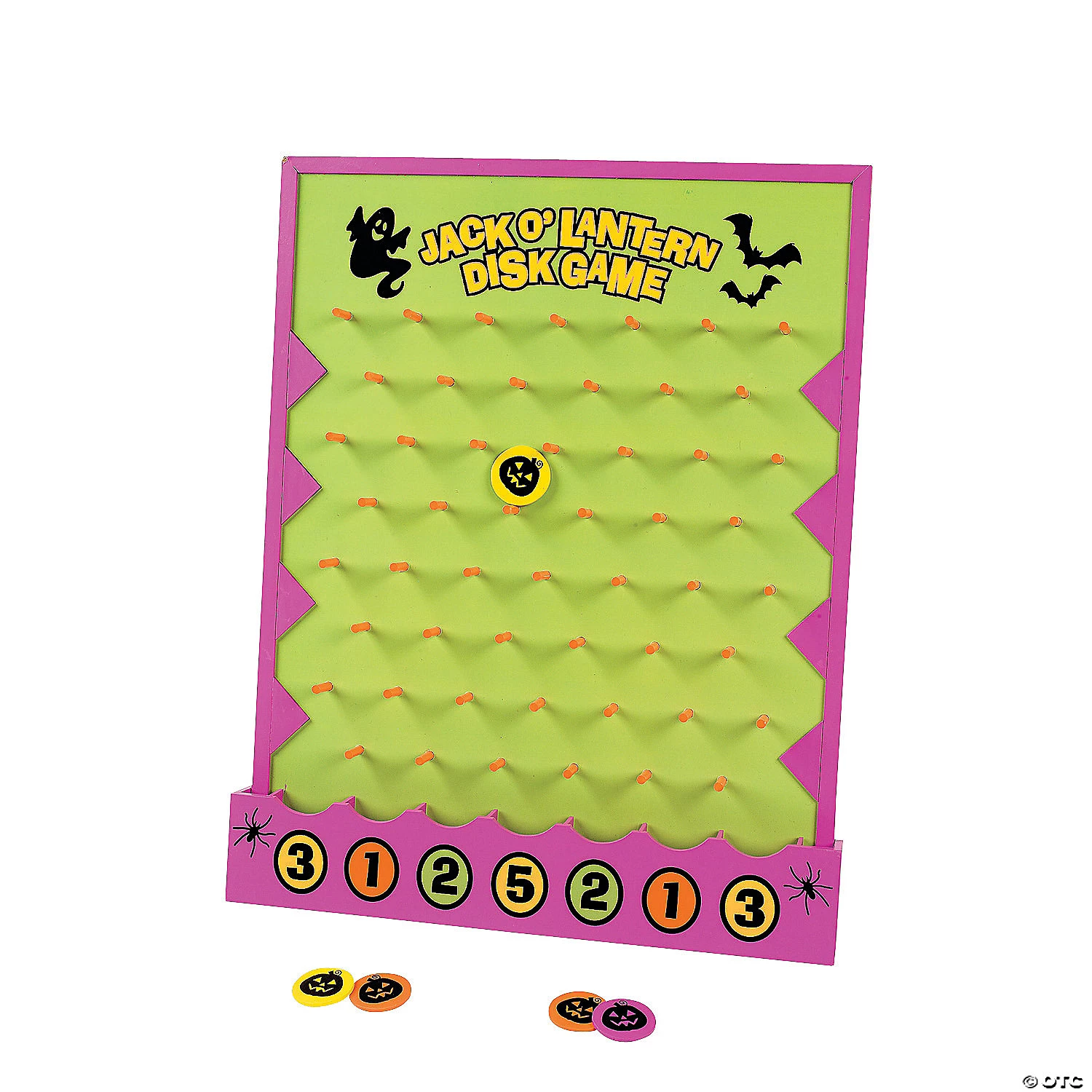 Need a fun game to play for your Halloween party? Great for classroom or home use, our Halloween Disk Drop Game is fun and easy to play! To score points, place a disc flat on the board and let it drop. See where it lands — the highest points wins! Includes six 11/2″ discs, a 16″ x 20 ” game board and support pole. Wood. (8 pcs. per set)