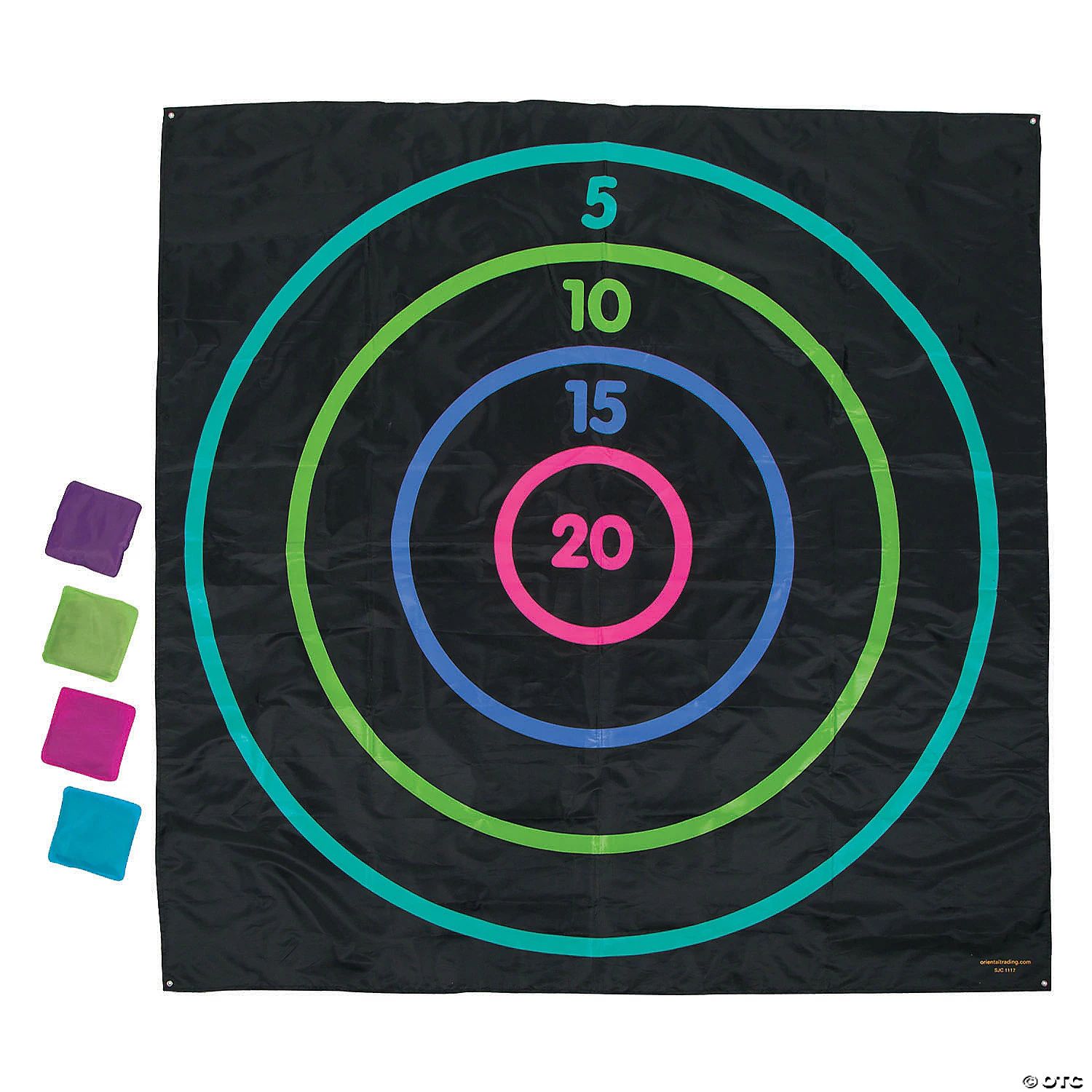 Fun, competitive entertainment for little learners of all ages! A great addition to classroom games or physical education programs, this bean bag toss game builds hand-eye coordination while improving gross motor skills. They’ll have a blast tossing the vibrantly colored bean bags into the jumbo target, raking up points and laughs with each turn. Includes twelve 5″ bean bags. Vinyl. (13 pcs. per set) Target, 55″ x 55″. Includes grommets for hanging. © OTC