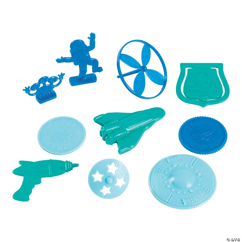 Launch their play to galactic levels with this BIG assortment of space toys! Buy these bulk toys to pass out to students as you take off on a lesson about the solar system or the moon. These small toys include a space shuttle, astronaut, alien and more. They also make great party favors at a space themed party. Plastic. (100 pcs. per unit) 1″ – 2″ Assortment may vary. © OTC