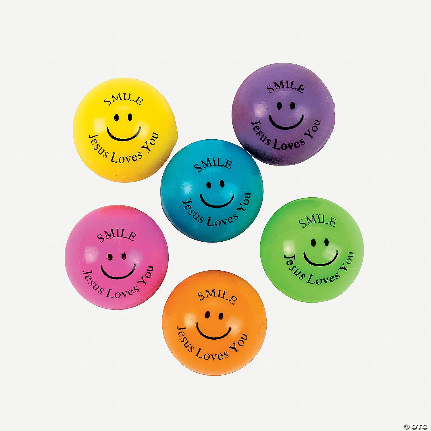 These Smile Jesus Loves You Mini Bouncy Balls will have you Bouncy for joy! A fun prize for a Sunday School class, VBS giveaways, Trunk or Treat or a church carnival, these religious high-bounce balls come in a rainbow of vivid colors. Fun for active play at your church or during youth group! (4 dozen per unit) 1″ (25mm)