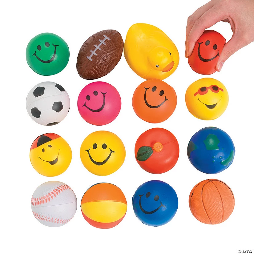 Everyone needs a stress ball! These useful foam balls are excellent gifts and party favors. Fill baskets and set them around the celebration room as party decorations! They’re a fun and cheerful way to relax, focus and stay in the moment. Keep one in your home, at your office and carry a spare in the car! They’re also thoughtful gifts to hand out to students. (25 pcs. per unit) 2 1/2″ – 3″ Assortment may vary.