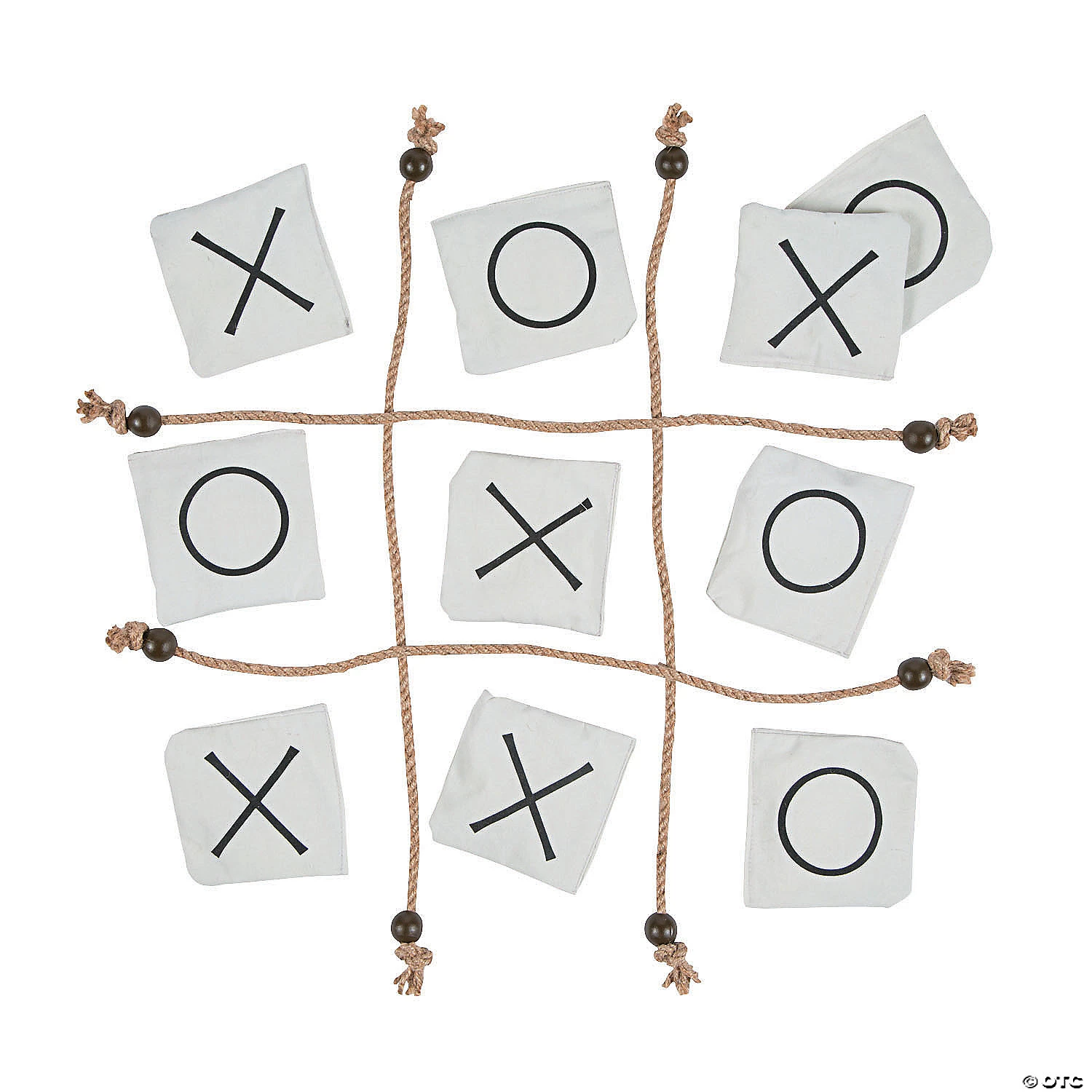 Set up this Tic-Tac-Toe Bean Bag Toss Game just about anywhere! Lay out the jute ropes in a hashtag pattern and try to toss your X bean bag or your O bean bag in just the right spot. Take this game set along on a road trip and pull it out when you stop to stretch your legs. This tic-tac-toe game set also is perfect as a wedding reception activity and at a family gathering or a picnic. Canvas. (14 pcs. per set) 10 bean bags, 4″ x 4″; four jute ropes, 20″ with 3/4″ wooden beads. © OTC