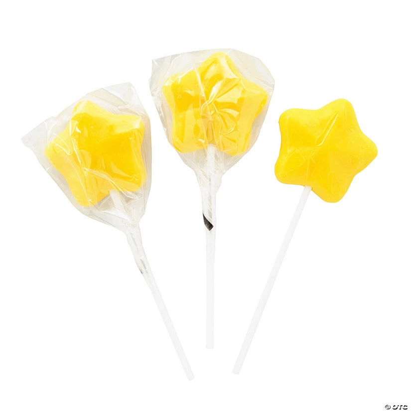 Treat your little “stars” to some yummy, fruit-flavored fun with these yellow star lollipops. Great as handouts or prizes for kids, these lollipops make fantastic classroom rewards for star students! Slip these star-shaped lollipops into goody bags or use them as party favors to delight kids (and probably some adults!). Mixed fruit flavor. Individually wrapped. 2″ x 2″ pops on 4″ plastic sticks. Total wt., 7 oz. © OTC• Candy is non-returnable. For more information, visit our “Return Policy” page located on our website.• Ingredient, nutrition, allergen and other product information are provided on our Web and Mobile sites for reference purpose only, without warranty or representation as to accuracy. Manufacturers adjust their labeling regularly and are solely responsible for the accuracy of the information. For general questions concerning these items, please contact our customer service at 800-228-0475.