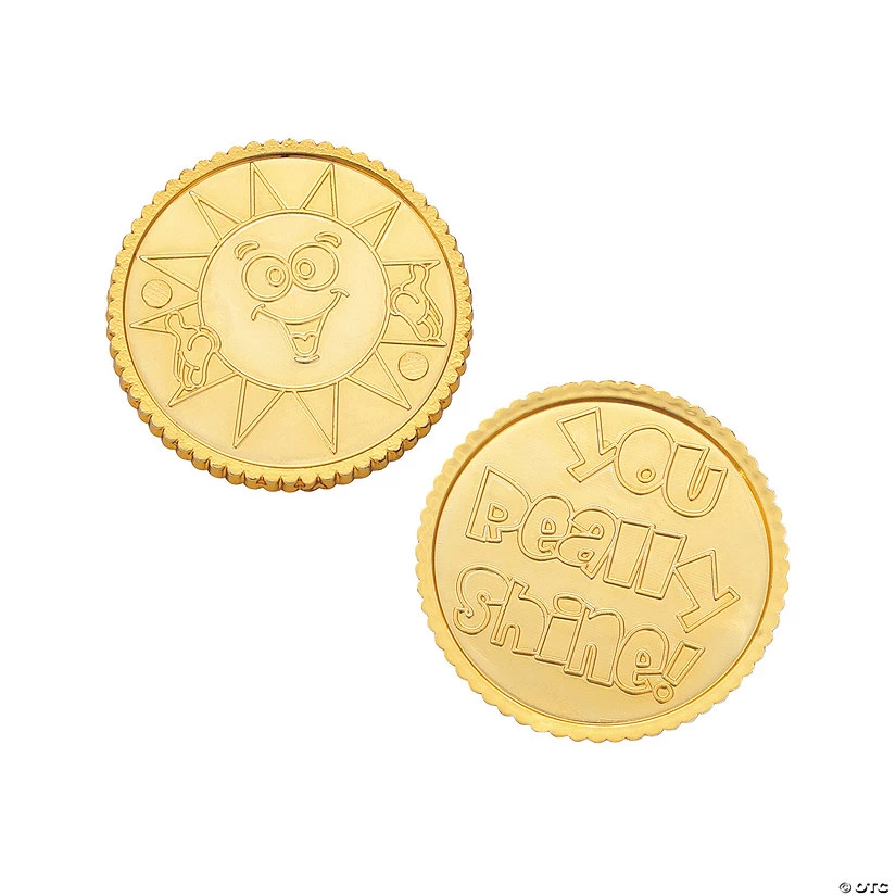 Show your appreciation for a job well done with “You Really Shine!” Gold Coins. Makes a great treasure at pirate parties or camps. Use as tokens of appreciation for good behavior, good deeds or good work. Plastic. (144 pcs. per unit) 2″ © OTC